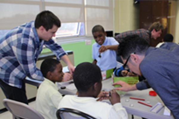 For a second year, SPS has conducted outreach with Life Pieces to Masterpieces, a youth development nonprofit organization that serves African American boys in D.C. With Life Pieces, SPS conducts I CAN Science: a series of six weekly, hands-on science workshops designed to inspire. Many undergraduates participated, including Brian Alden, Oliver Berroteran, Francis Carmody, Mikaela Sparks and Zoe Pierce, as well as faculty members Evie Downie, Alexander van der Horst and SPS advisor Gary White. Under the guidance of Professor White, outreach chairs Sri Murthy and Jacob Maibach composed a proposal for the SPS Marsh White Award, which GW SPS received for the second year in a row. The plan promised to continue to improve the weekly lessons, and to establish a permanent “mobile science station” on site for the boys of Life Pieces to explore science on their own. The mobile science station includes a selection of AIP award-winning children’s science books, such as Batman Science: The Real-world Science Behind Batman’s Gear and How to Make a Universe with 92 Ingredients: An Electrifying Guide to the Elements. The station also includes tools and toys from the science workshops, such as plasma balls from a lesson on lightning and prisms from a lesson on light and colors. Further items included a laser chess set for the already chess-savvy students.