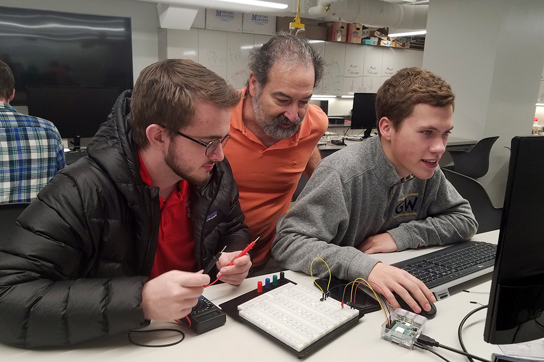 Consult your research advisor and the departmental undergraduate advisor for guidance on how to satisfy a research course. All majors in the Department of Physics also have to take the Physics Capstone (PHYS 4195W) course, which prepares students for doing research and guides them in defining a research project. All BS students also have to take the Physics Symposium (PHYS 4200) course, which guides students in preparing a written report on the research project, a poster presentation at the CCAS Research Showcase, and an oral presentation at the Physics Undergraduate Symposium Day.